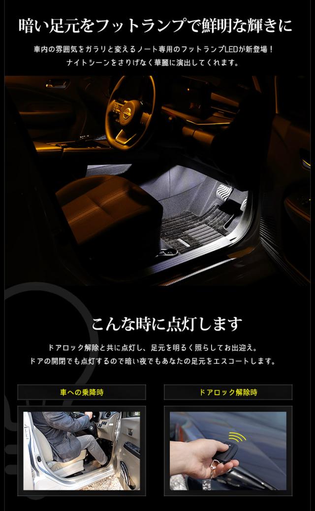 人気車種 E13 ノート の ウェルカムランプ + フットランプのお得な2点セット(セット専用配線付き)です♪
