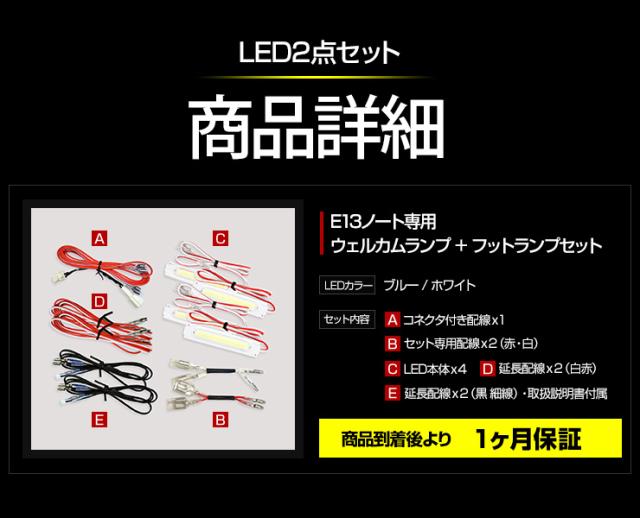 E13 ノート 専用 LED ウェルカムランプ + フットランプ セット【全2色】 NOTE ブルー ホワイト ウェルカム フット ランプ 足元 カスタム パーツ アクセサリー ドレスアップ ニッサン [5]-1