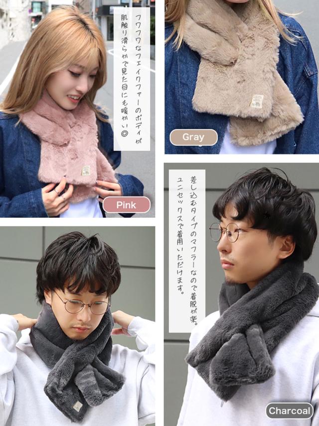 moz モズ マフラー レディース メンズ ティペット 差し込みマフラー ボア ブランド ロゴ 切り替え 秋 冬 防寒 もこもこ ふわふわ あったか 男女兼用 スカーフ