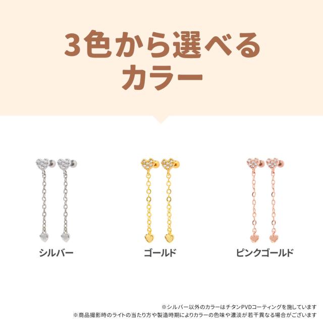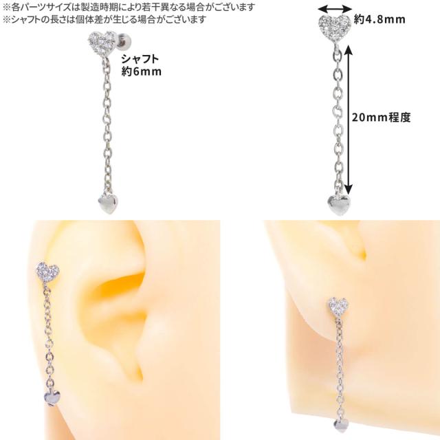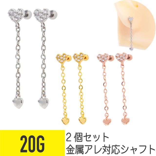 2個セット ハート チェーン ストレートバーベル ジュエル 20G サージカルステンレス ジルコニア ジュエル シルバー ゴールド ピンクゴールド イヤーロブ ヘリックス 軟骨ピアス ボディピアス 揺れる ミニハート チャーム