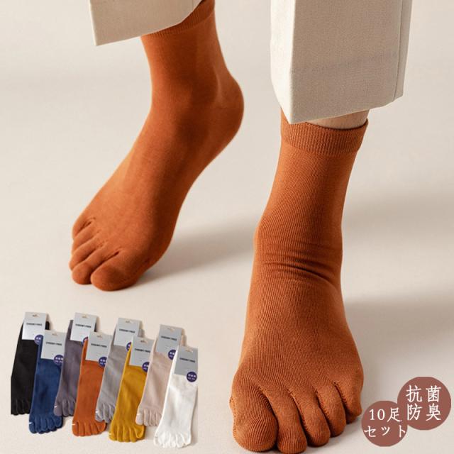 靴下 ソックス 男性用 厚手 五本指 人気 安い 通勤 通学 10足セット 無地 綿混 秋冬 弾性 抗菌防臭 伸縮性 シンプル 快