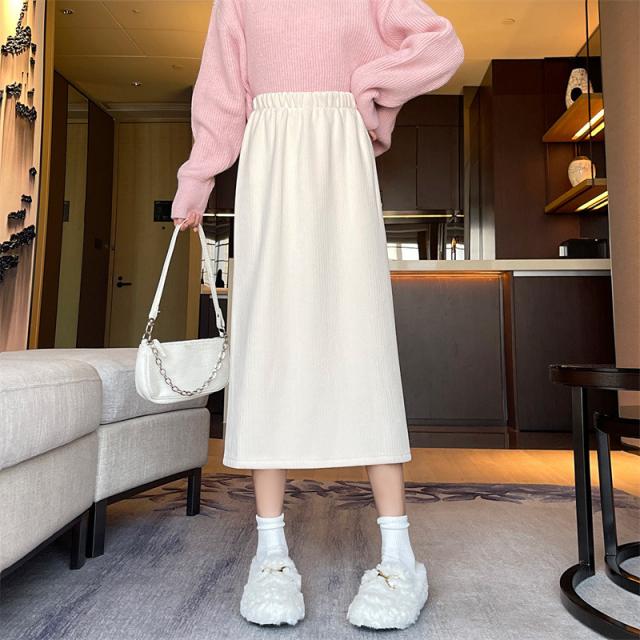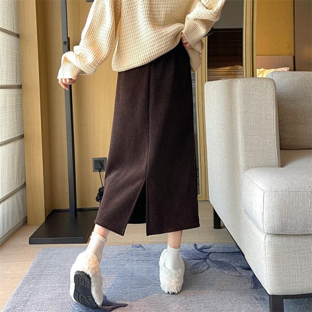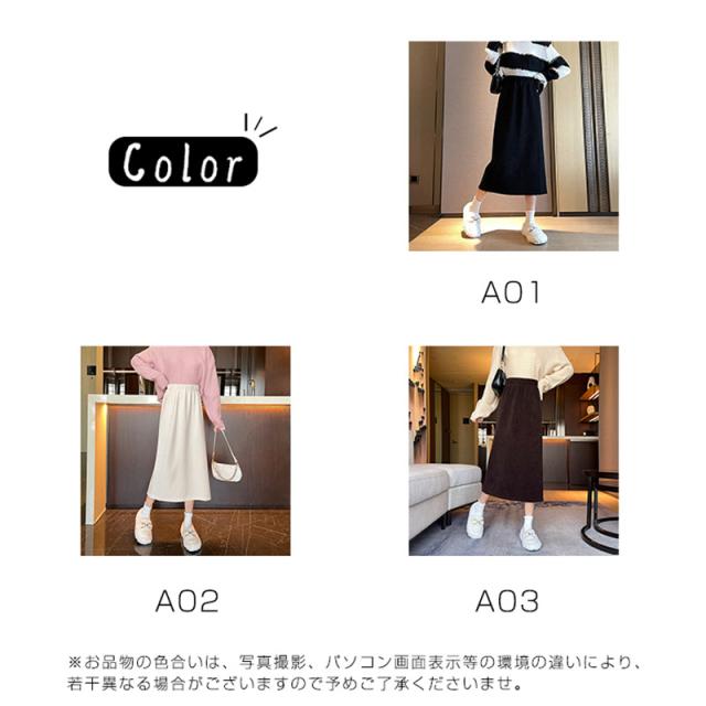 コーデュロイカート タイトスカート スリット入り レディース 秋冬 ボトムス あたたかい ストレッチ ミモレ丈 ロング ストレート