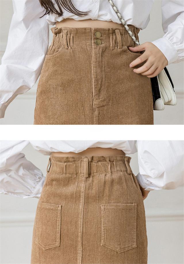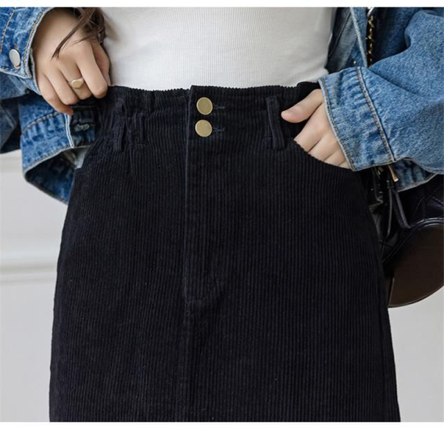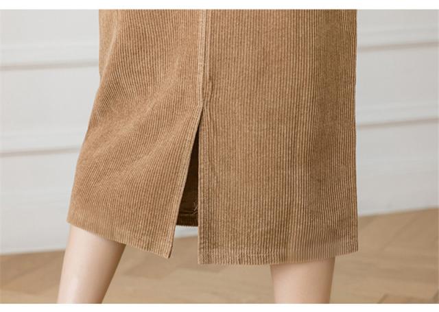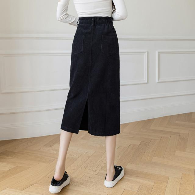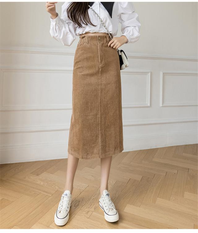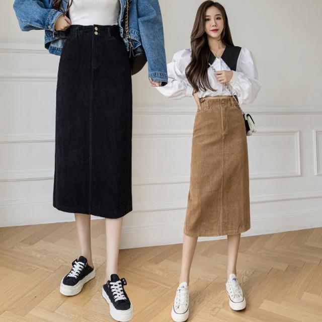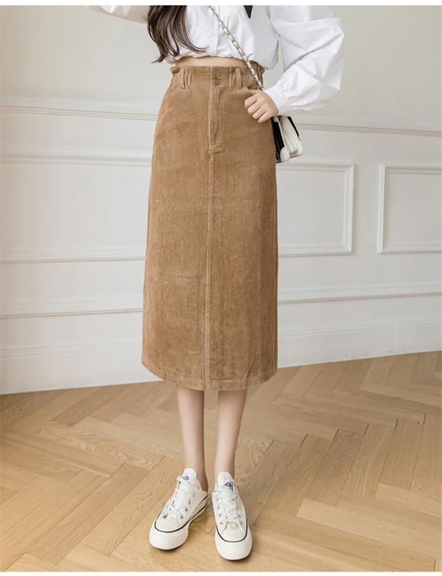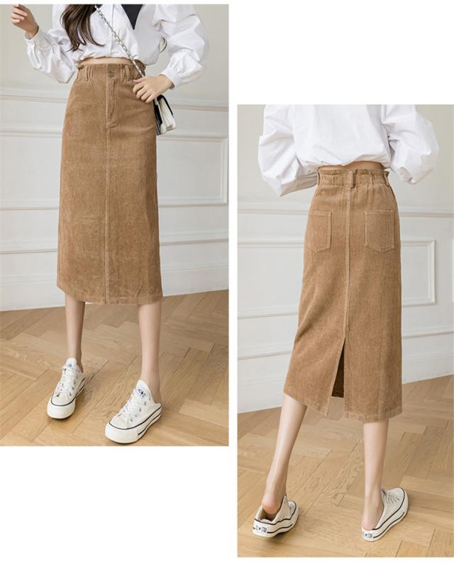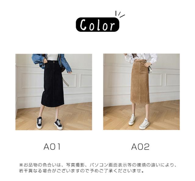 コーデュロイカート タイトスカート スリット入り レディース 秋冬 ボトムス あたたかい ストレッチ ミモレ丈 ロング ストレート