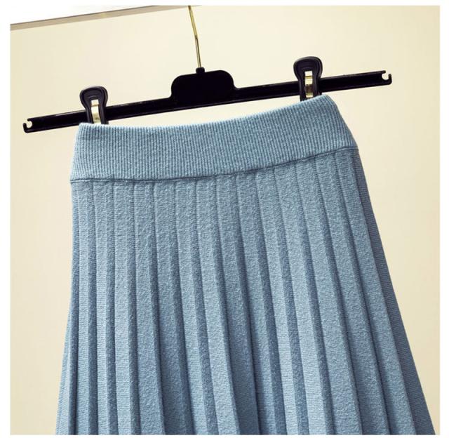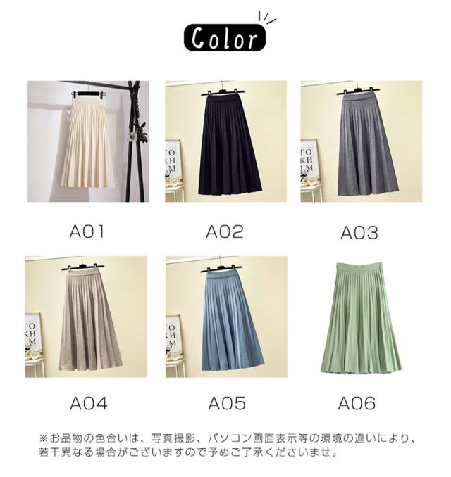 ニットスカート プリーツスカート フレアスカート レディース 秋冬 ボトムス あたたかい ストレッチ ミモレ丈 ロング ストレート