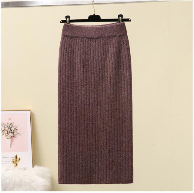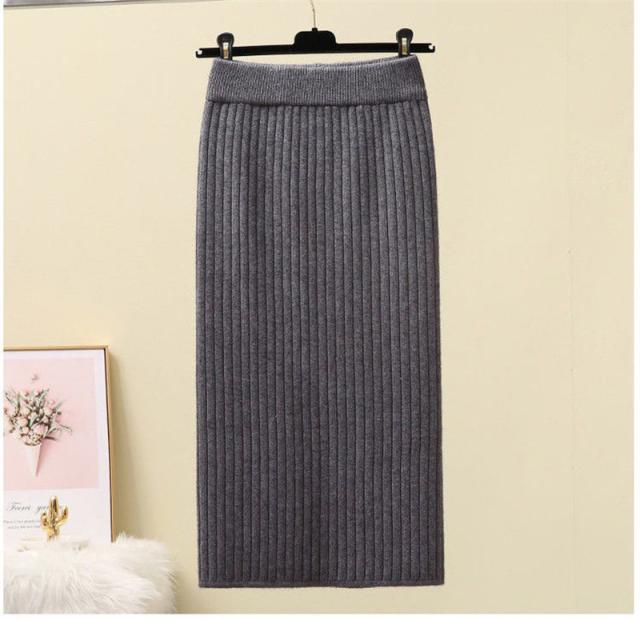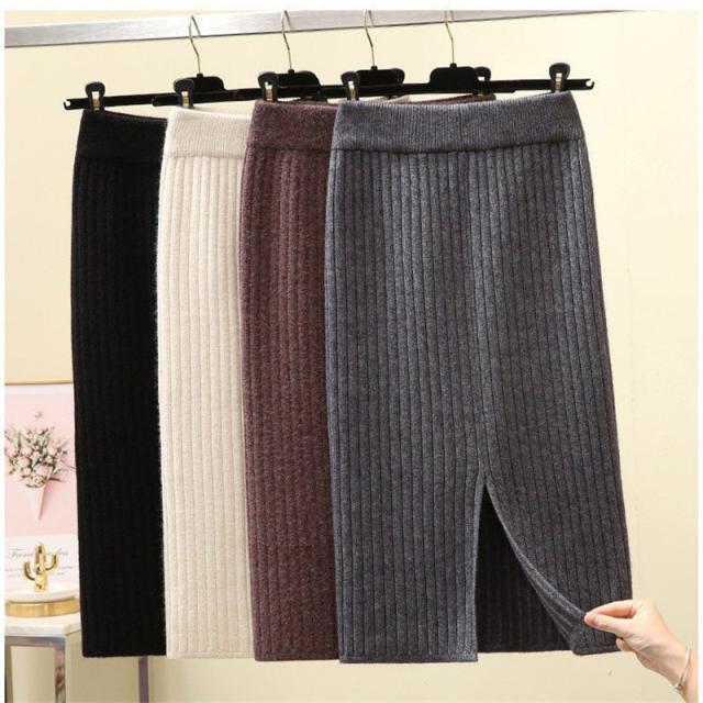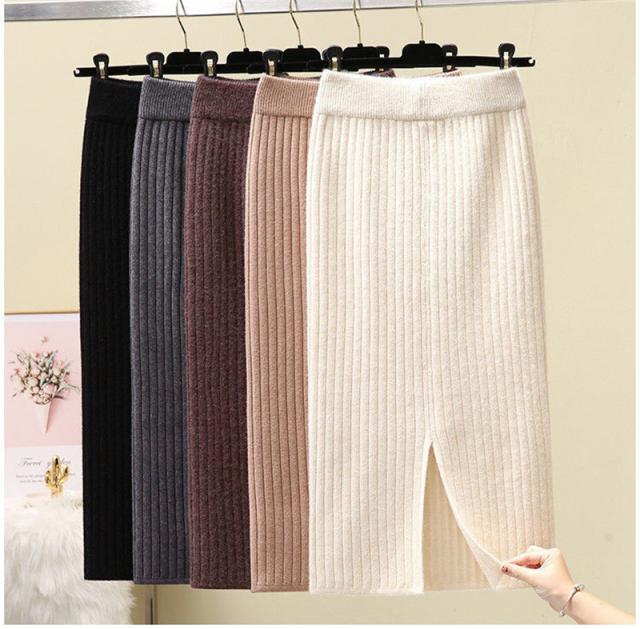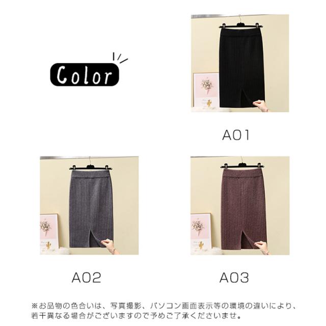 ニットスカート スリットスカート スリット入り タイト レディース ボトムス あたたかい ストレッチ ミモレ丈 ロング ストレート