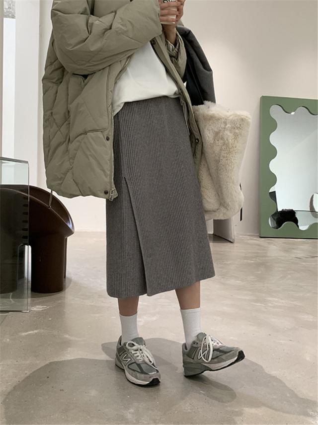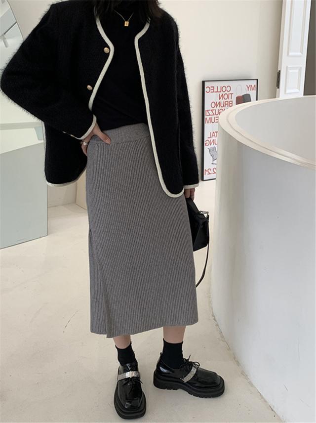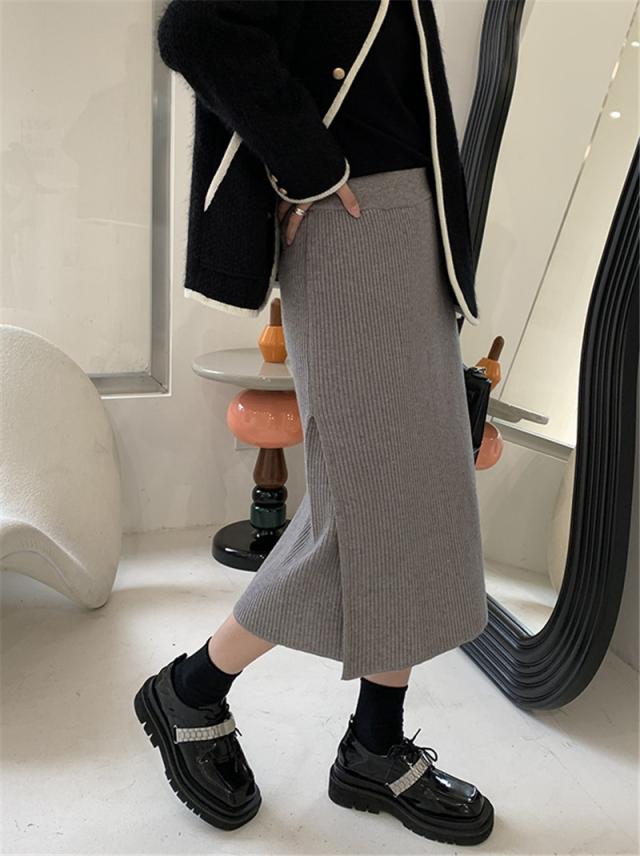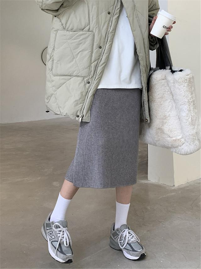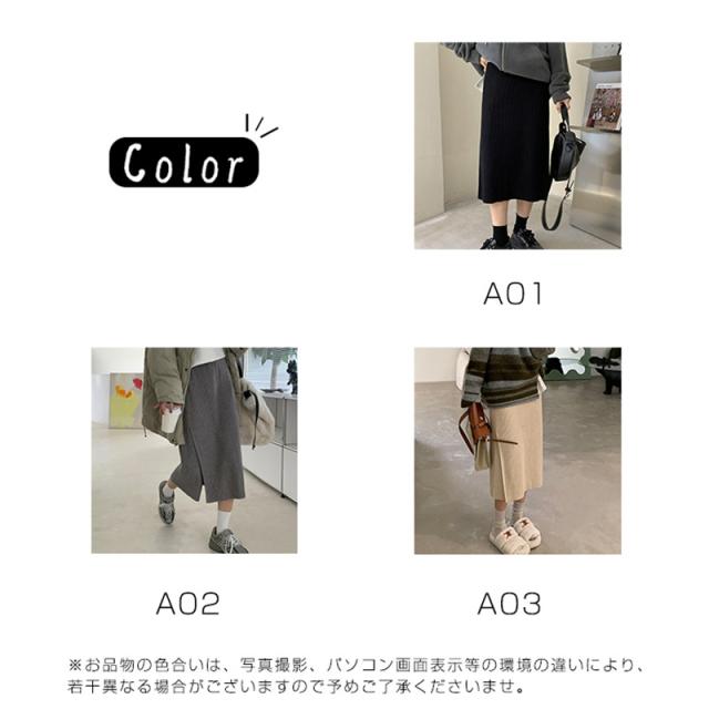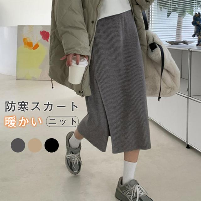 ニットスカート スリットスカート スリット入り タイト レディース ボトムス あたたかい ストレッチ ミモレ丈 ロング ストレート