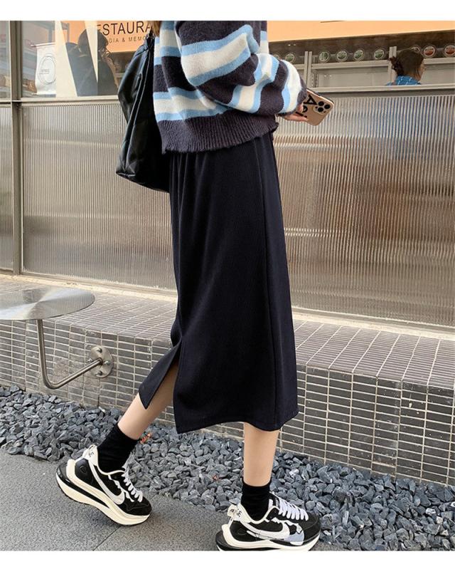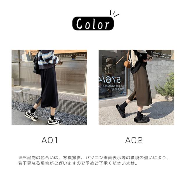 ニットスカート スリットスカート スリット入り タイト レディース ボトムス あたたかい ストレッチ ミモレ丈 ロング ストレート