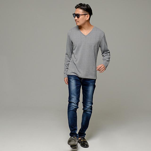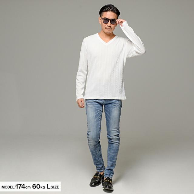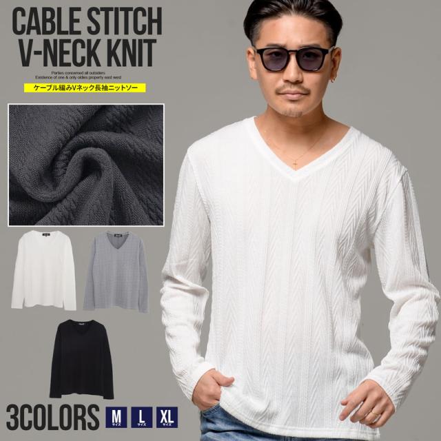 ニット メンズ セーター ブランド 大人 おしゃれ シンプル ケーブル編み 長袖Tシャツ ロンT 長袖 伸縮性 Vネック トップス ホワイト グレー ブラック 白 黒 M L カジュアル キャバリア CavariA 春 秋 冬 20代 30代 40代 メンズファッション 即日発送 [CAST22-48]