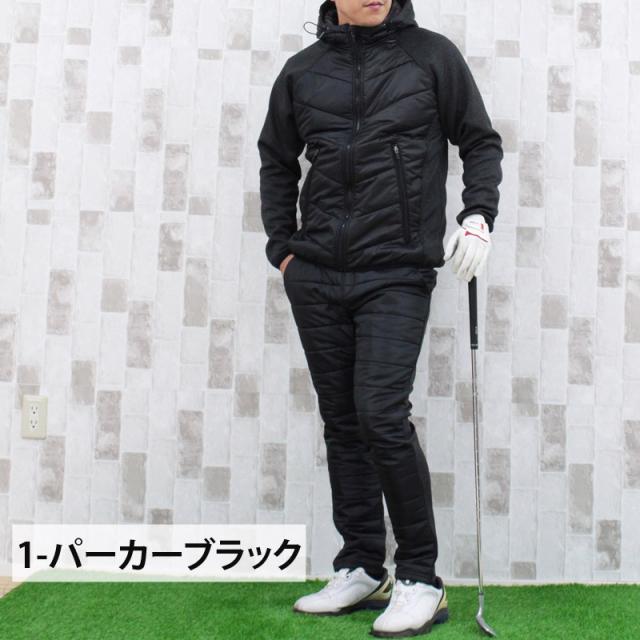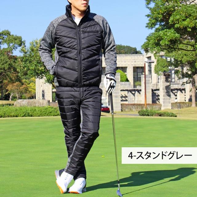 送料無料 新作 セットアップ ゴルフウェア メンズ 上下セット 中綿 暖か裏起毛 フリース ジャケット ゴルフパンツ ブルゾン 秋冬 ボトムス アウター おしゃれ