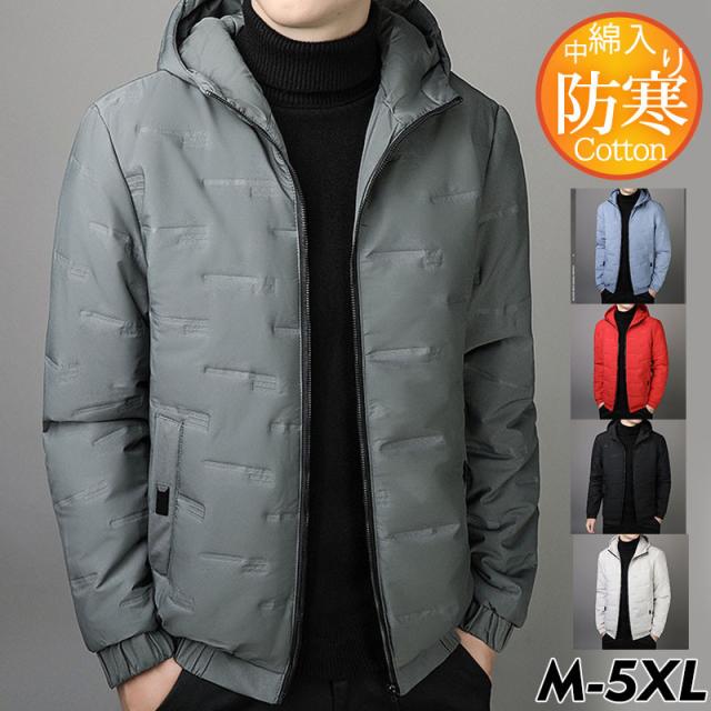 中綿ジャケット メンズ 中綿コート フード付き アウター ブルゾン 無地 軽量 薄手 シンプル ゆったり スリム 暖か 冬服 防寒