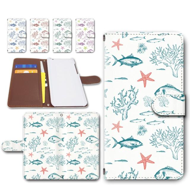 MONO MO-01J ケース 手帳型 カメラ穴搭載 魚群 ホワイト さかなさかな おしゃれ モノ mo01j カバー スマホケース 手帳型スマホケース 携帯ケース 手帳 カバー