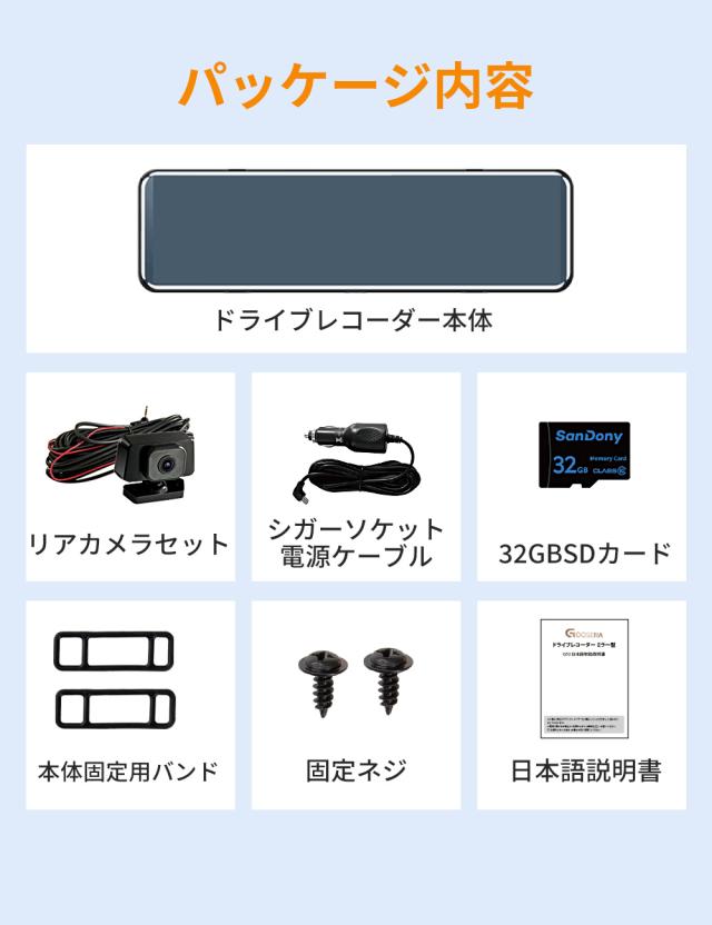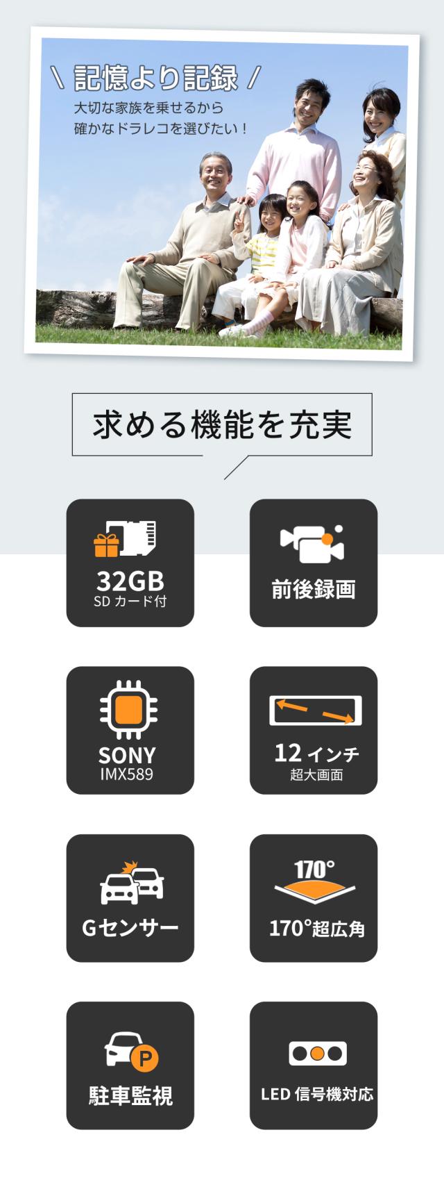 【サンシェードおまけプレゼント】ドライブレコーダー ミラー型 4K 1440P 高画質 SONYセンサー 12インチ 前後カメラ 同時録画 24時間駐車監視 地デジ干渉対策 32GB高速SDカード付き HDR/WDR