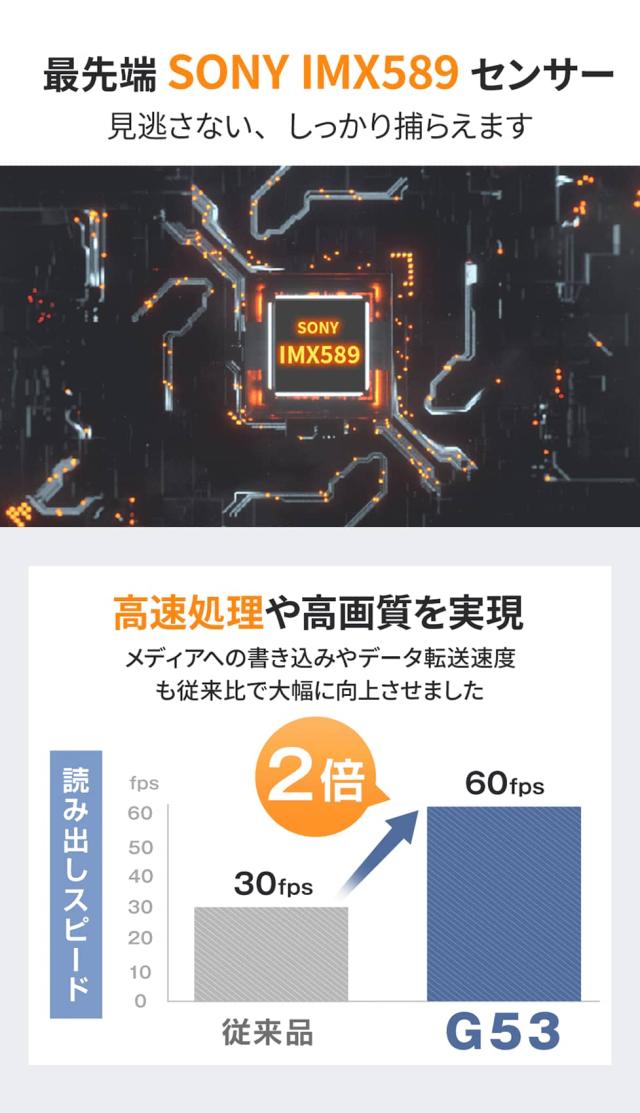 【前後2カメラ・SONY製IMX589センサー搭載】