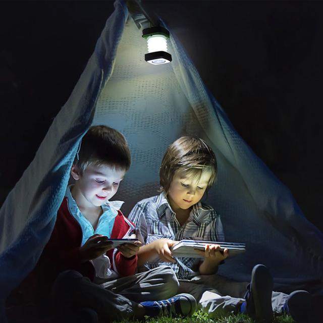 【両用&懐中電灯/ランタン】ハンドルを引き出すと、木やテントなどにかけて使用可能、上部はゴム接着点付き、 テーブルライトでも使用可能。そして、折り畳み可能なので、折り畳んだら、その取って持ち上げて懐中電灯に変身します。懐中電灯とキャンプライト両用できますので、日常用もキャップ用も大活躍できます。