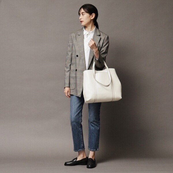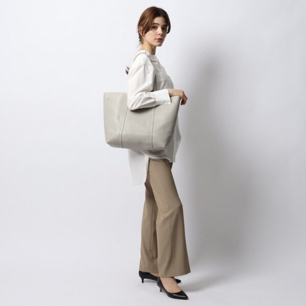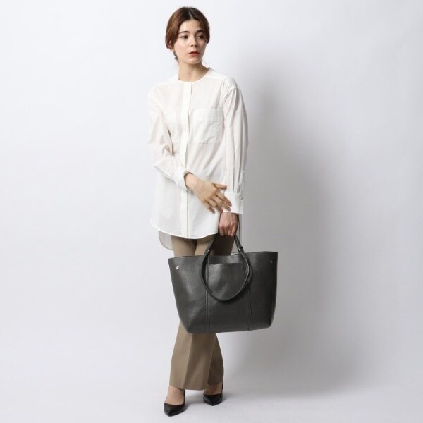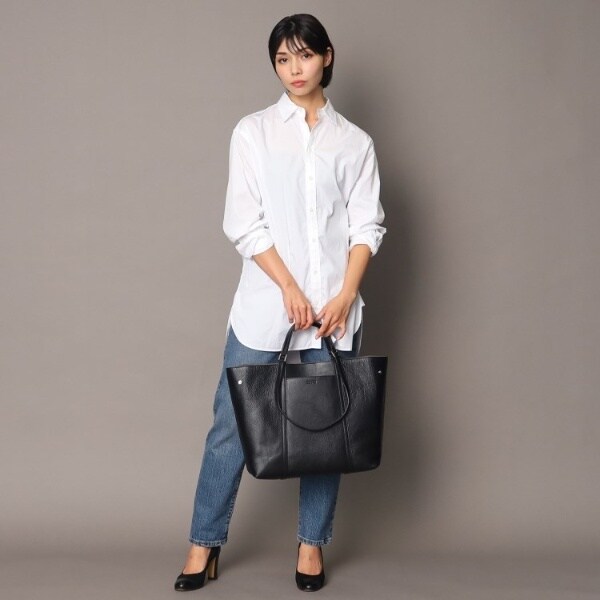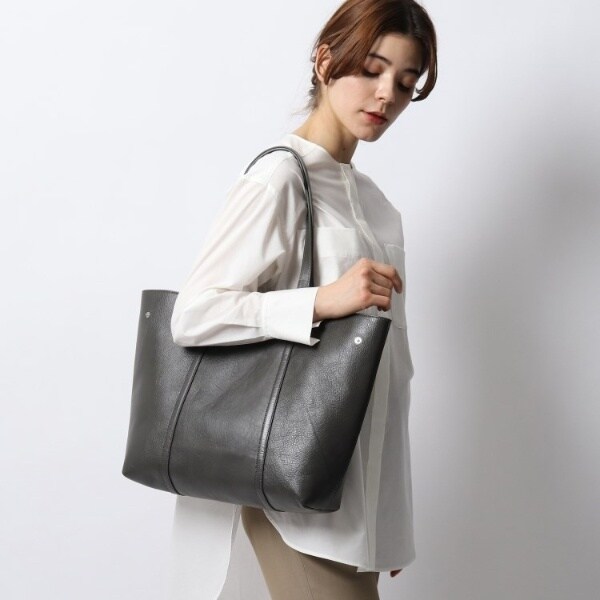 荷物の増減やスタイルに合わせて、サイドのスナップで形を変えてお持ちいただけます。