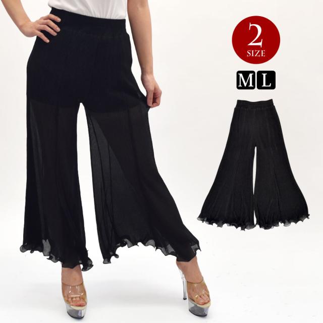 ダンスパンツ シースルーフレアパンツ リブ パンツ 社交ダンス ベリーダンス衣装 BG28W11[M便 4/3] 舞踊 バレエ ジャズダンス レディース インナー付 伸縮素材 ロング丈