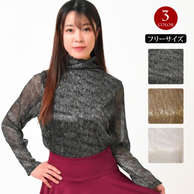 ダンストップス ラメメッシュトップス ダンス衣装 社交ダンス衣装 コーラス衣装 BG166083[M便 2/3] カラオケ衣装 ステージ衣装 シースルー レディース 伸縮素材 長袖 オフタートル