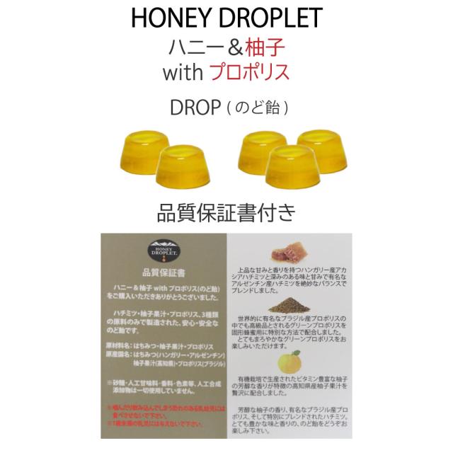のど あめ ドロッフ蜂蜜 はちみつ プロポリス 柚子 フラボノイド 健康食品 国産 無添加 のど 改善 口臭 予防 改善 エネルギー チャージ 体調管理