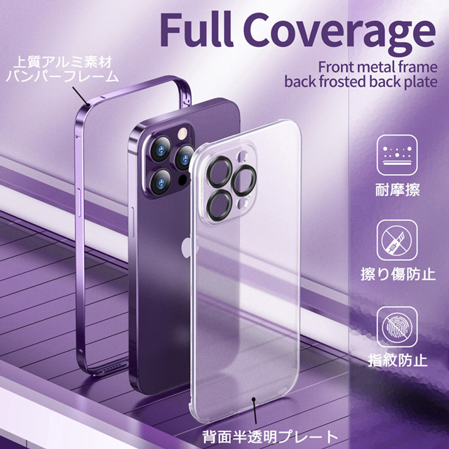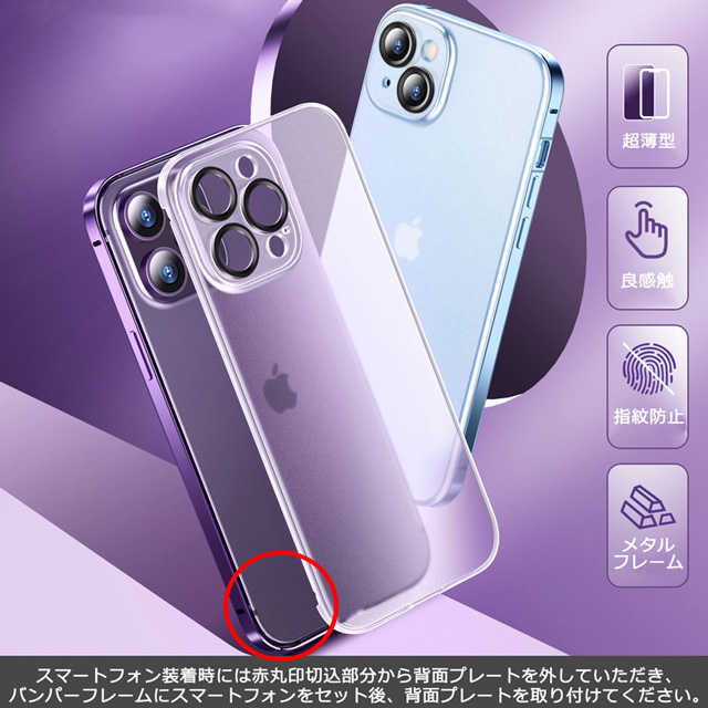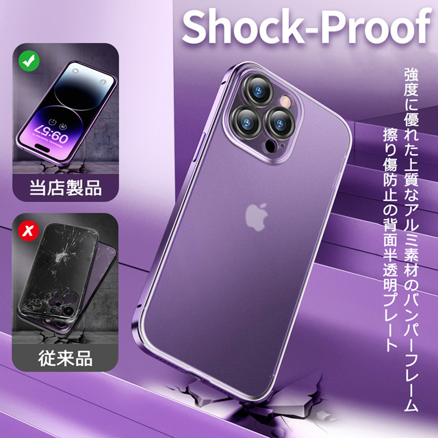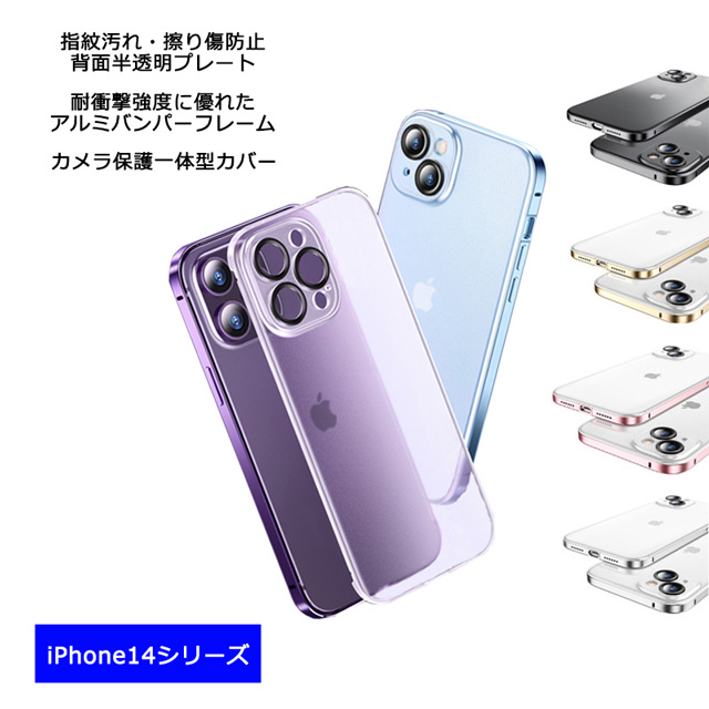 iPhone14 iPhone14Plus iPhone14Pro iPhone14ProMax ケース アルミバンパーフレーム 背面半透明プレート カメラ保護 カバー アイフォン14 14プラス 14プロ 14プロマックス 耐衝撃 薄型 軽量 スマホケース ワイヤレス充電対応 送料無料