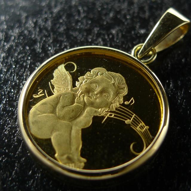 純金 k24 エンジェル コイン ペンダントトップ ソロモン 金貨 24金 25分の1オンス 1.7g 天使 エリザベス2世 メンズ レディース