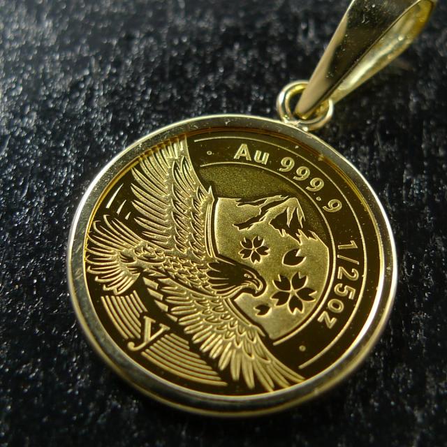 純金 k24 イーグル コイン ペンダントトップ ソロモン 金貨 24金 25分の1オンス 1.5g 鷲 エリザベス2世 メンズ レディース