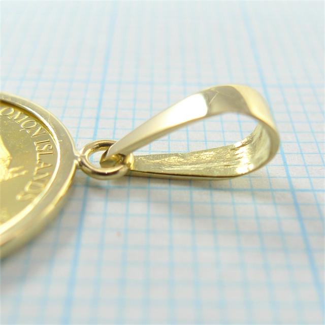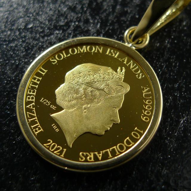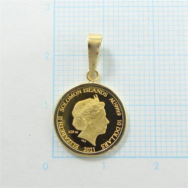 南太平洋の英連邦独立国・ソロモン諸島発行の1/25オンス純金コインに、K18製の枠が付いたペンダントトップです。