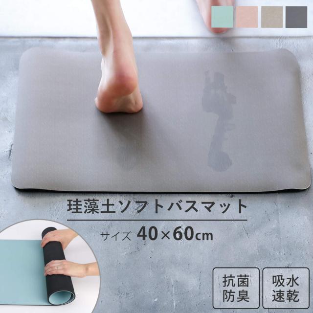 バスマット 珪藻土 ソフトバスマット 40×60cm ソフト ( 珪藻土バスマット 軽量 速乾 吸収 足ふきマット 滑り止め 抗菌 消臭 アスベスト不使用 お風呂マット 無地 シンプル コンパクト )