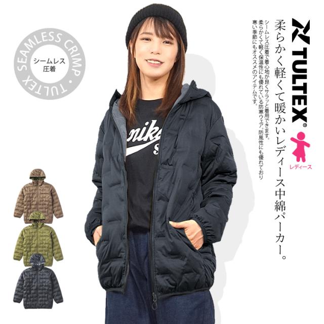 中綿 ジャケット パーカー レディース アウター 中綿 圧着ニット 防風 ストレッチ シームレス タルテックス 22581【即日発送/営業日16時迄】