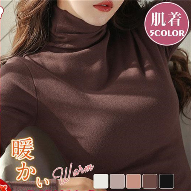 送料無料 カットソー レディース トップス インナー 肌着 ハイネック 長袖Tシャツ タートルネック スリム 可愛い カジュアル 無地 秋冬 新作