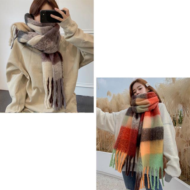 全品送料無料一部除く チェック柄 ボリュームマフラー 【即納】 マフラー ストール 大判ストール ロングマフラー ボリューム ミックスチェック マルチチェック ブロックチェック 太フリンジ レディース 韓国 プチプラ 流行り トレンド 人気 おすすめ おしゃれ かわいい 冬小物