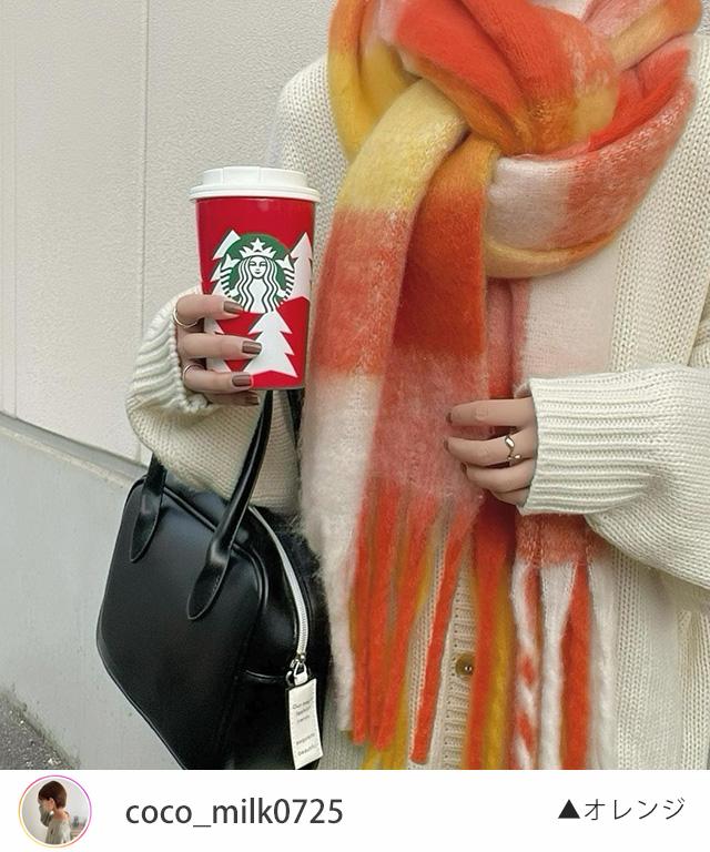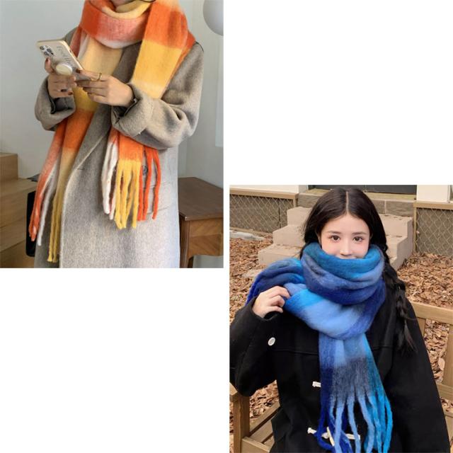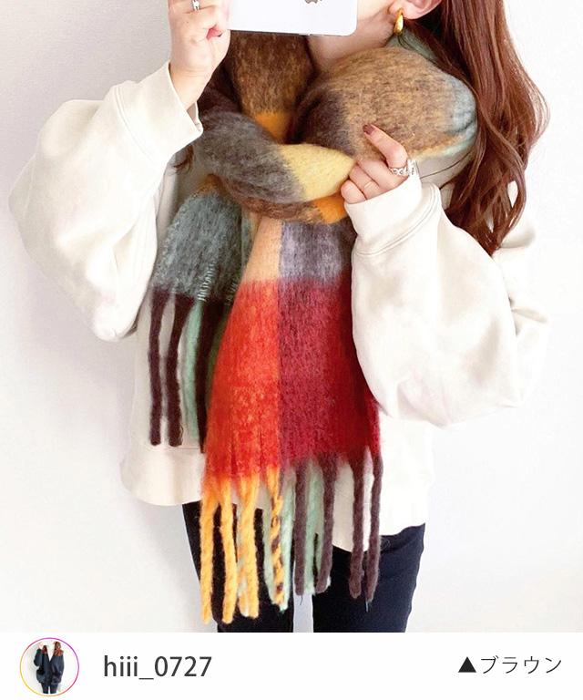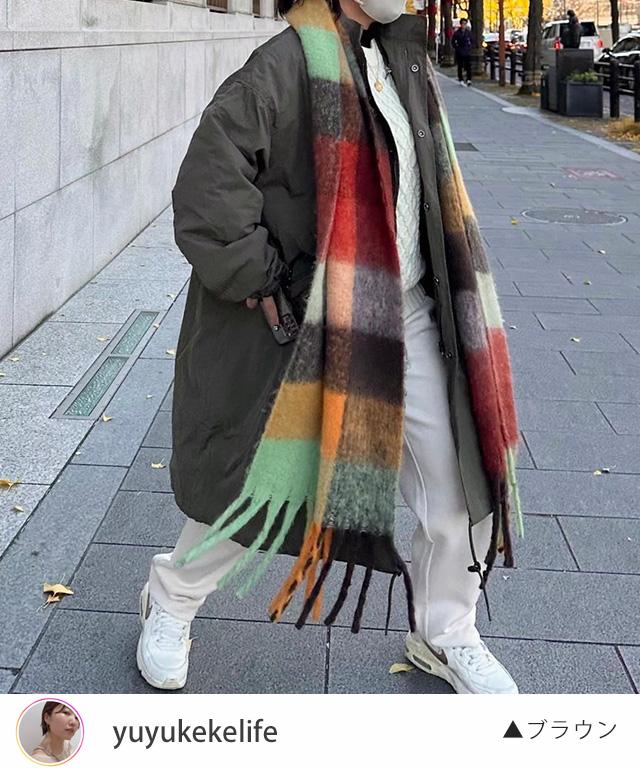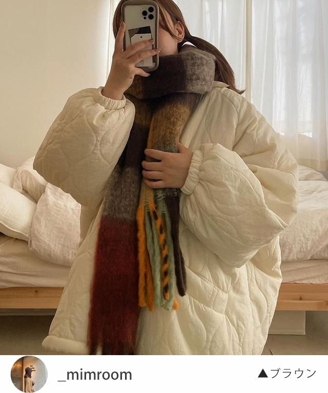 カラフルなカラーとボリューム感がかわいいトレンドマフラー。