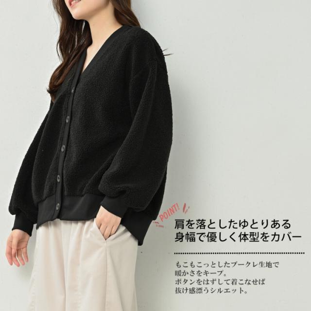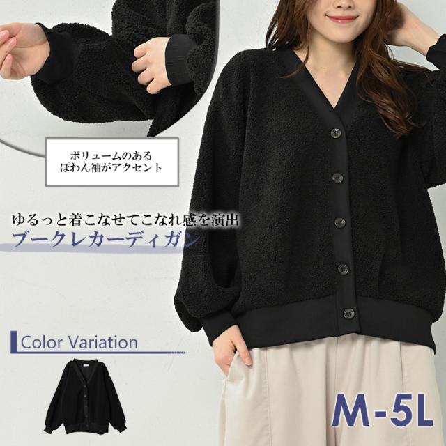 大きいサイズ レディース 長袖トップス 長袖カーディガン ニットカーディガン 大きめカーディガン 羽織り カーディガン カーデ 長袖 ブークレーニット もこもこニット ボア ライトアウター 防寒 秋服 冬服 秋トップス 冬トップス 前開きデザイン 前開きボタン フロントボタン ボリュームスリーブ パフスリーブ ぽわん袖 お尻が隠れる着丈 お尻すっぽり丈 ゆったり 大きめ 体型カバー 寒さ調節 プラスワン 上着 ナチュラル 大人 カジュアル フェミニン ガーリー きれいめ かわいい 着こなし おしゃれ 定番 秋コーデ 冬コーデ ファッション 大きめ 女性 婦人用 ミセス 30代 40代 50代 2022 秋 冬 黒 M LL 3L 4L 5L XXXXL 2XL 3XL 4XL 9号 13号 15号 17号 19号 cam-aw-tp0059