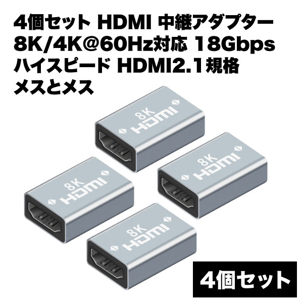 hdmi メスメス 変換 延長 アダプタ 中継 8K 4K 60Hz 対応 18Gbps 2.1規格 コネクター ケーブル延長接続 カプラー 4個 セット 送料無料