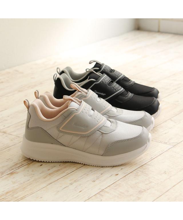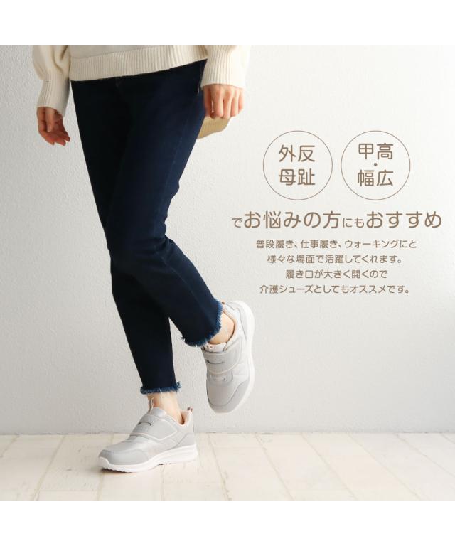 スニーカー レディース ローカット 幅広 5E 面ファスナー 軽量 リフレクター 反射板 マジックテープ 履きやすい 介護シューズ リハビリシューズ 反射材 ウォーキングシューズ コンフォートシューズ 軽い 黒 ブラック グレー 2831