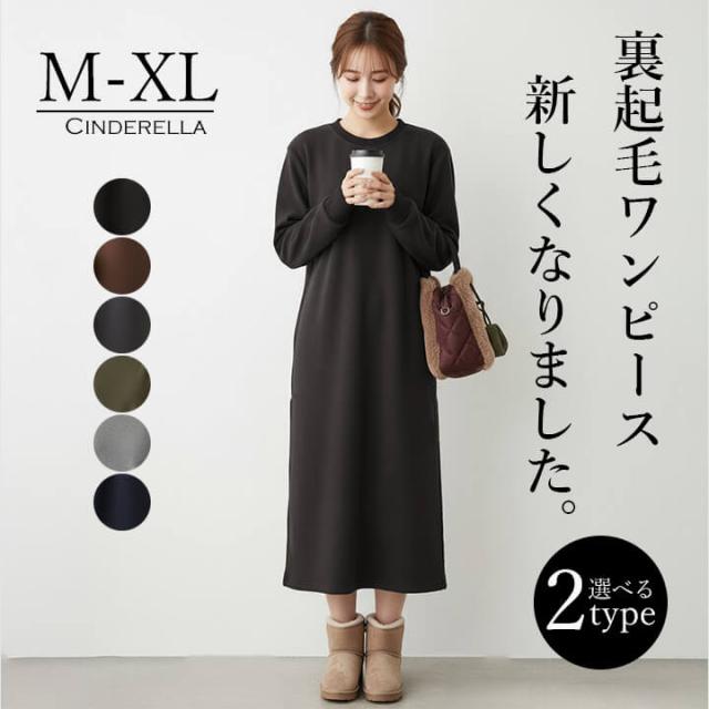 すっきり見せて中はぽかぽかな裏起毛ワンピース。