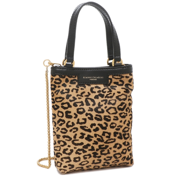 GIANNI CHIARINI(ジャンニキアリーニ)のハンドバッグが入荷しました☆チェーンストラップを付けてラグジュアリーな雰囲気を高めたレオパード柄のバッグ。さりげなくあしらったブランドロゴがポイントです。必要最低限の荷物を収納でき、アクセサリー感覚でおしゃれに持ち歩くことができます。