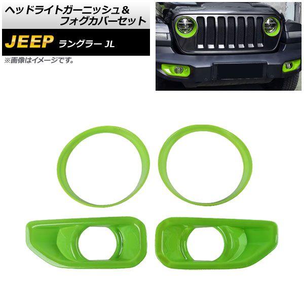 ヘッドライトガーニッシュ&フォグカバーセット ジープ ラングラー JL ルビコン不可 2018年10月〜 ライトグリーン ABS製 入数:1セット(4個) AP-XT1771-LGR