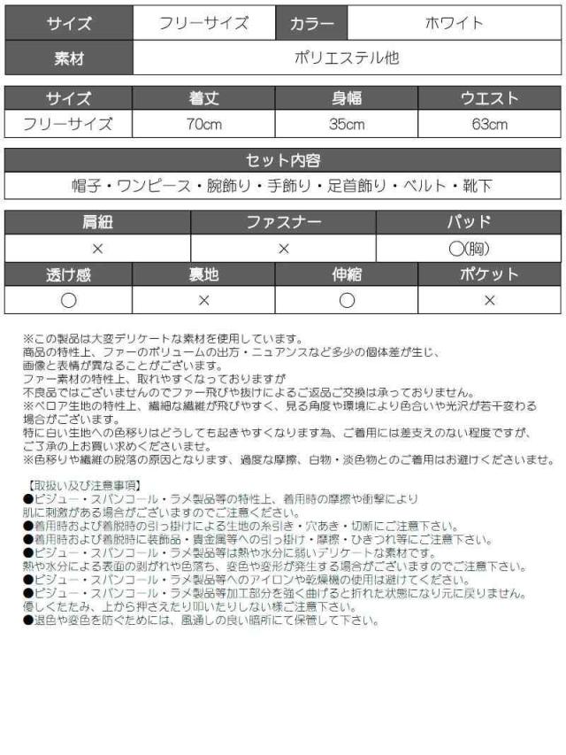 セット内容:帽子・ワンピース・腕飾り・ベルト・手飾り・足首飾り・靴下