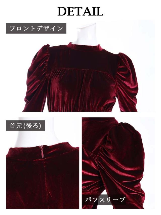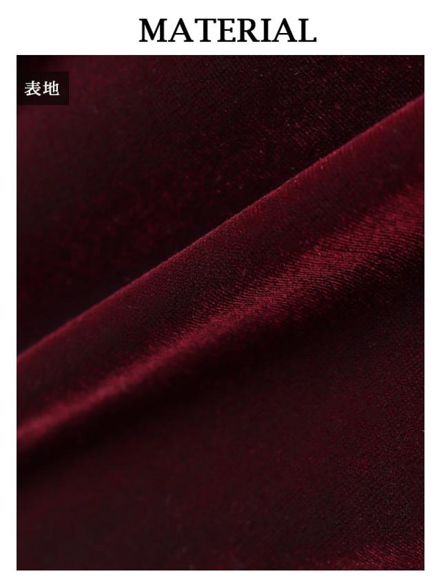 ☆ドレッシーで高貴なムードを演出するベロアドレスはパワーショルダーの長袖となっており二の腕をカバーしながらクラシカルな雰囲気もプラスするエレガントキャバドレス。