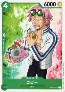 ST02-006 | C | CHARACTER コビー コスト4 属性 打 パワー6000 カウンター1000 色緑 特徴海軍 テキスト - 入手情報 王下七武海【ST-02】