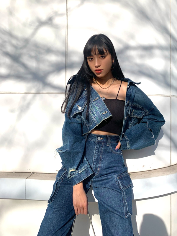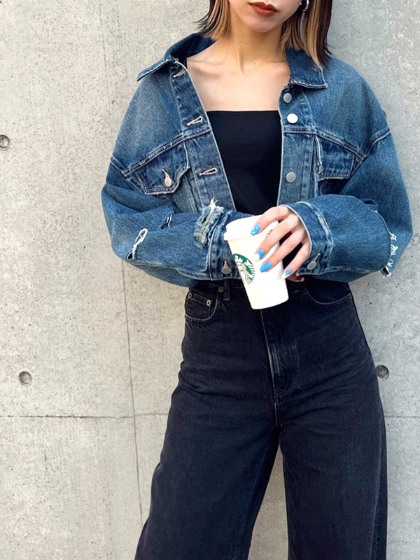 スリットデザインがポイントのショート丈デニムジャケットです♪