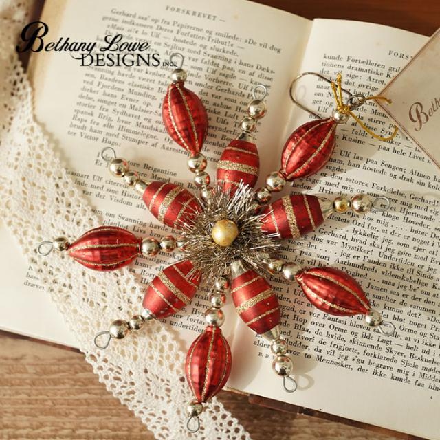 クリスマスツリー 飾り オーナメント Bethany Lowe Designs ビンテージスターバースト飾り レッド[LC0677]