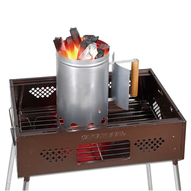 たくさんの木炭をまとめて火起こしできる、大型火起こし器です。備長炭も着火できます。