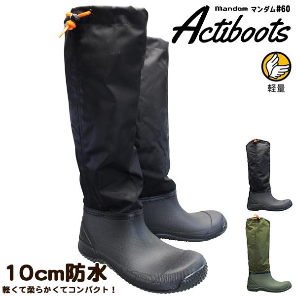 丸五 作業ブーツ マンダム#60 Actiboots ブラック カーキ 23cm〜28cm レディース 防水ブーツ 撥水ブーツ 折りたためる 長靴