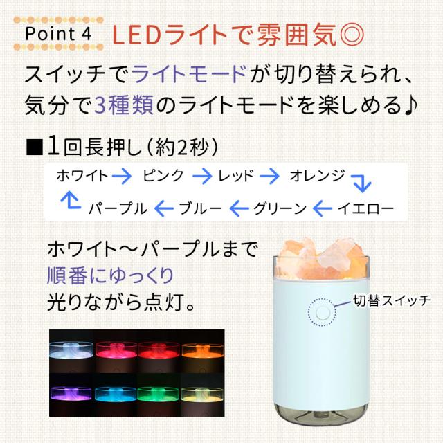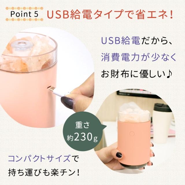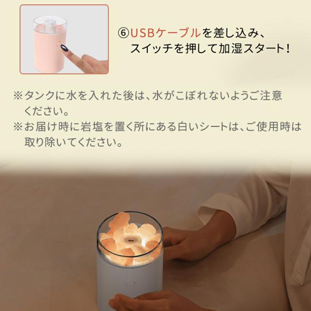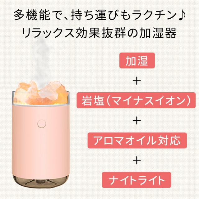 岩塩加湿器/USB/ナイトライト/加湿器/小型加湿器/USB加湿器/アロマ対応/ライト付き/明かり/ナノミスト/リラックス/アロマオイル対応/持ち運び/コンパクト/軽量/軽い/空気清浄/マイナスイオン/かわいい/可愛い/インテリア/おしゃれ/便利/北欧/加湿/アロマ加湿器/ミストタイプ/霧状/小型/手軽/お手入れ簡単/ミスト機能/キッチン/省電力/省エネ/照明/寝室/オフィス/仕事場/部屋/職場/子供部屋/ライフスタイル/ダイニング/