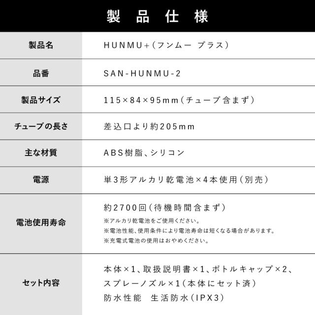 ★在庫限り50%OFF★5,390円⇒2,695円★アルコールディスペンサー ミスト フンムー 乾電池式 取付け式 非接触 オートディスペンサー アルコール 自動式 大容量 自動噴霧器 感染対策 噴霧量調節 HUNMU+ フンムープラス SAN-HUNMU-2 自動 予防 ウイルス対策 衛生的