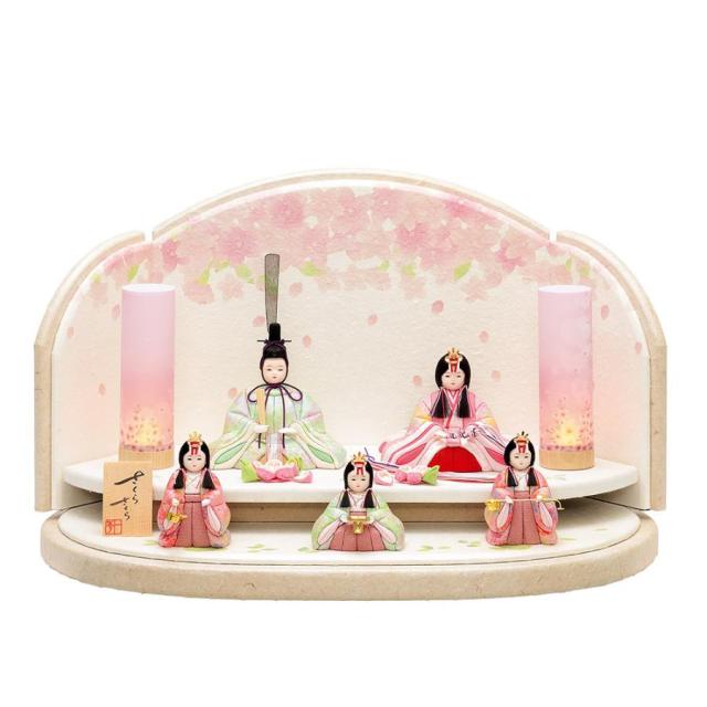 雛人形 木目込み 一秀 ひな人形 五人飾 16号 さくらさくら コードレス雪洞付 かわいい コンパクト ひな人形 ミニ おしゃれ まる顔 2023 23-c107