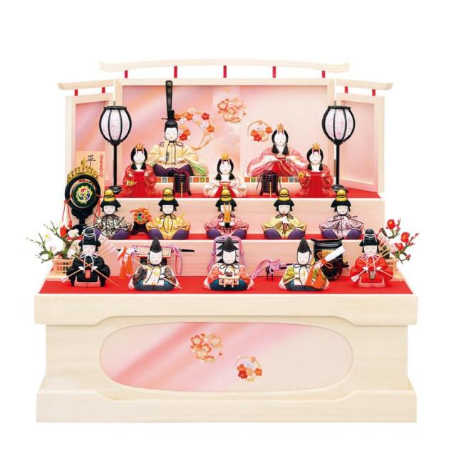雛人形 木目込み 一秀 ひな人形 十五人飾 平安雛15号 収納飾 収納箱 かわいい コンパクト ひな人形 お雛様 おしゃれ 可愛い まる顔 2023 23-d8