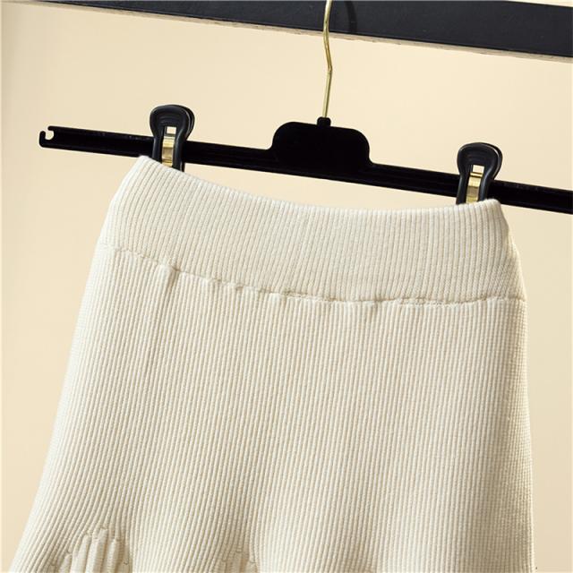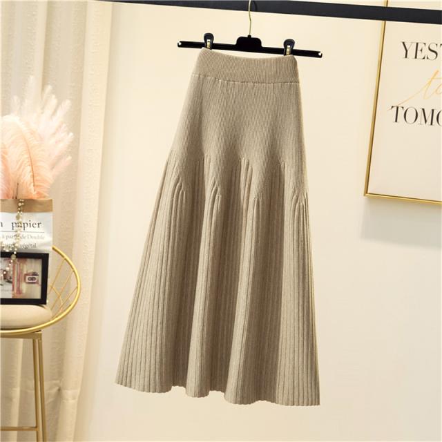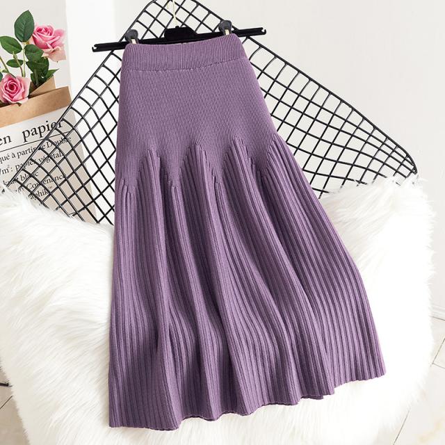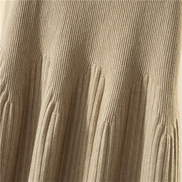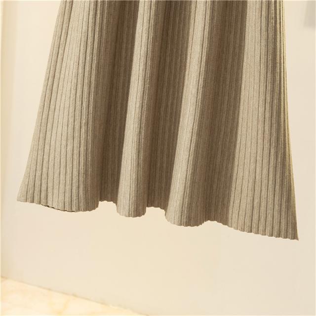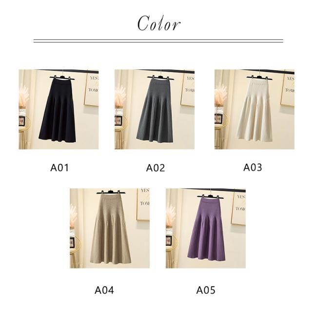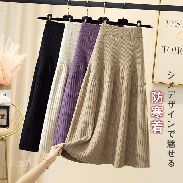 スカート レディース 厚手 秋冬 ロングスカート Aライン プリーツ ニット 通勤 カジュアル シンプル ハイウエスト 無地 着痩