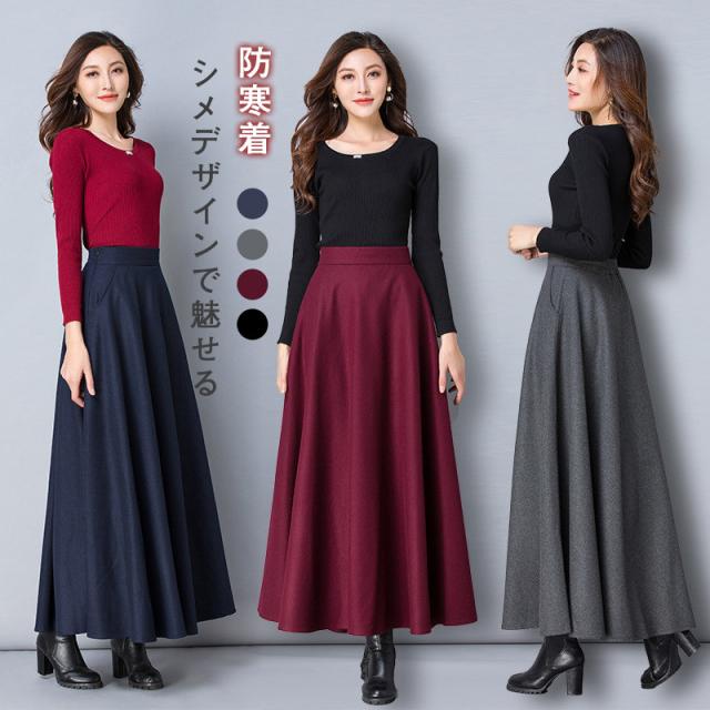 スカート レディース 防寒 ロング 裏起毛スカート フレア ウエストゴム 暖かい 冬 防寒 ボトムス 大人 おしゃれ 体型カバー